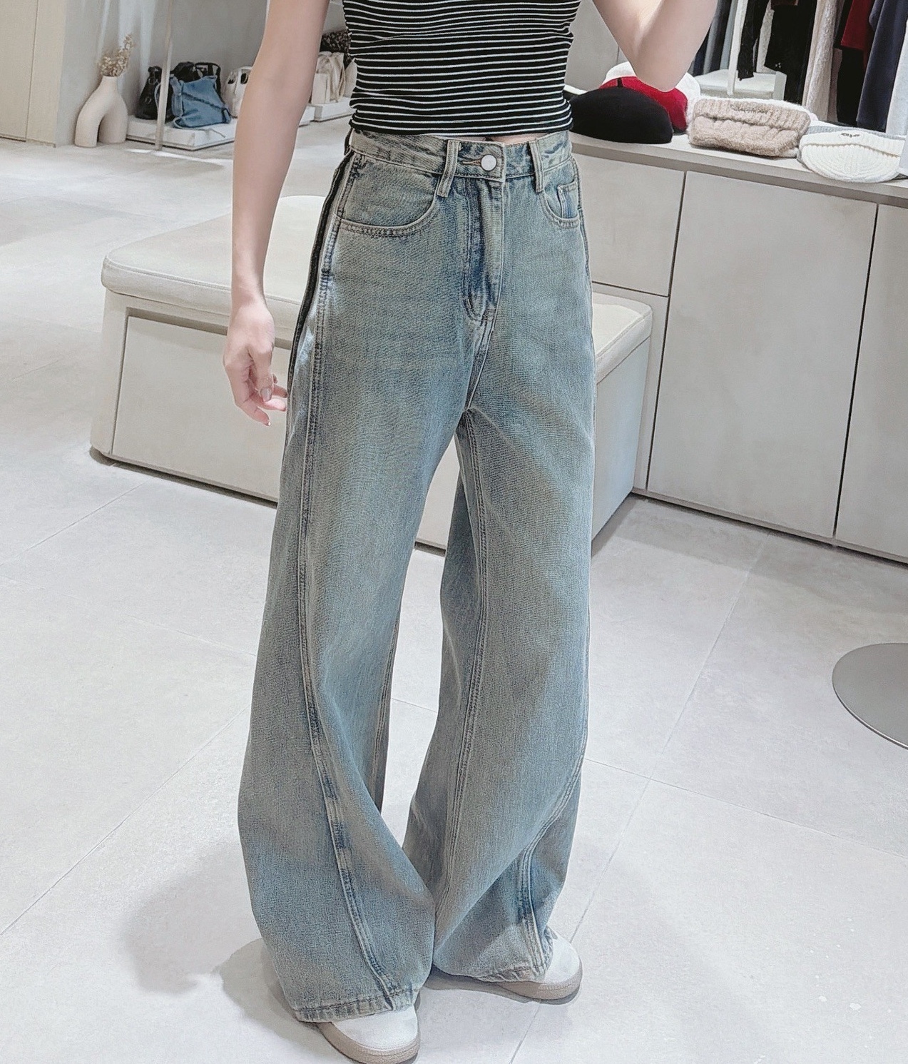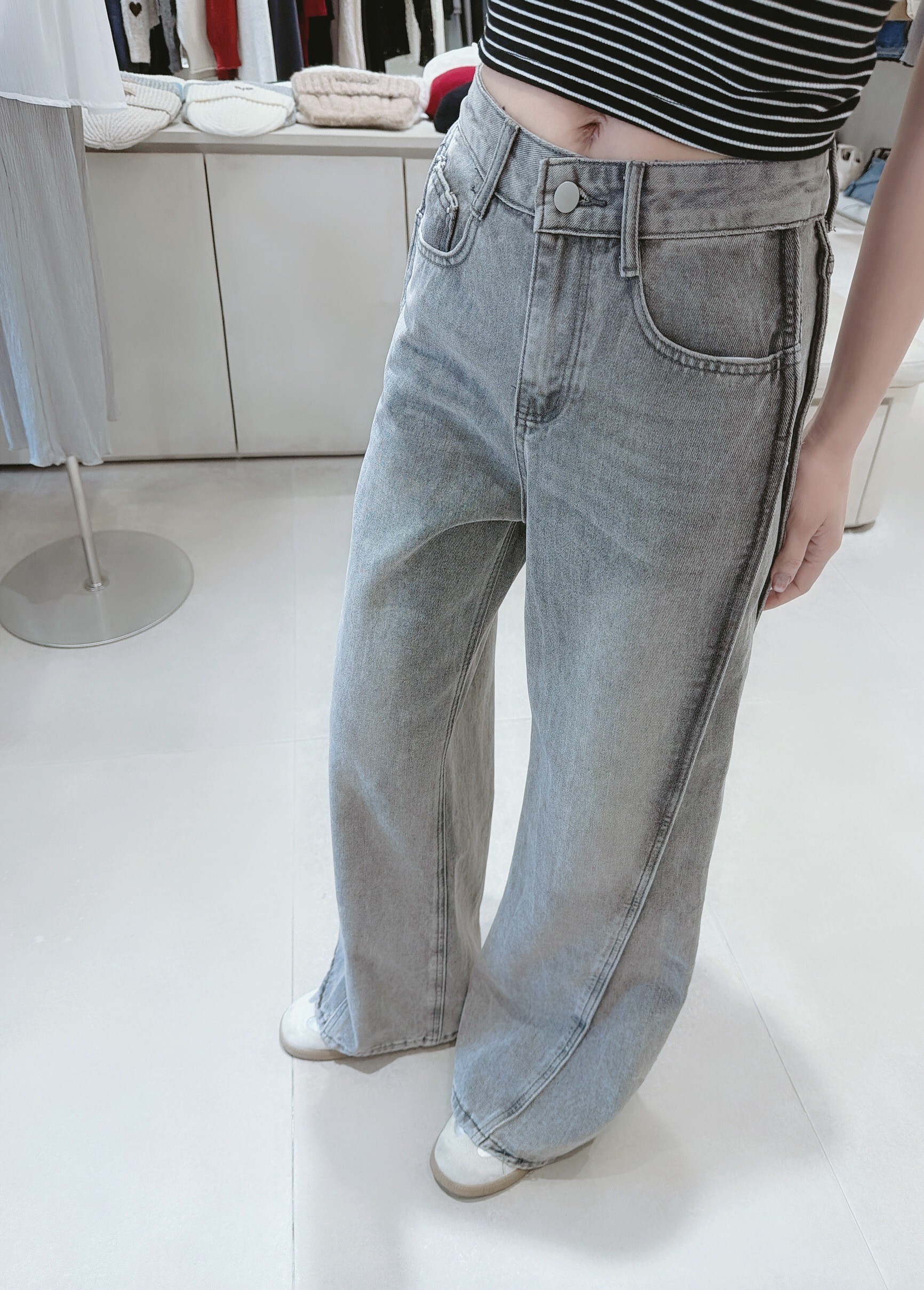 ● 牛仔商品工廠製作時,每批水洗刷色或破損程度皆有些許落差,未開釦洞不屬於瑕疵,可自行將釦洞剪開