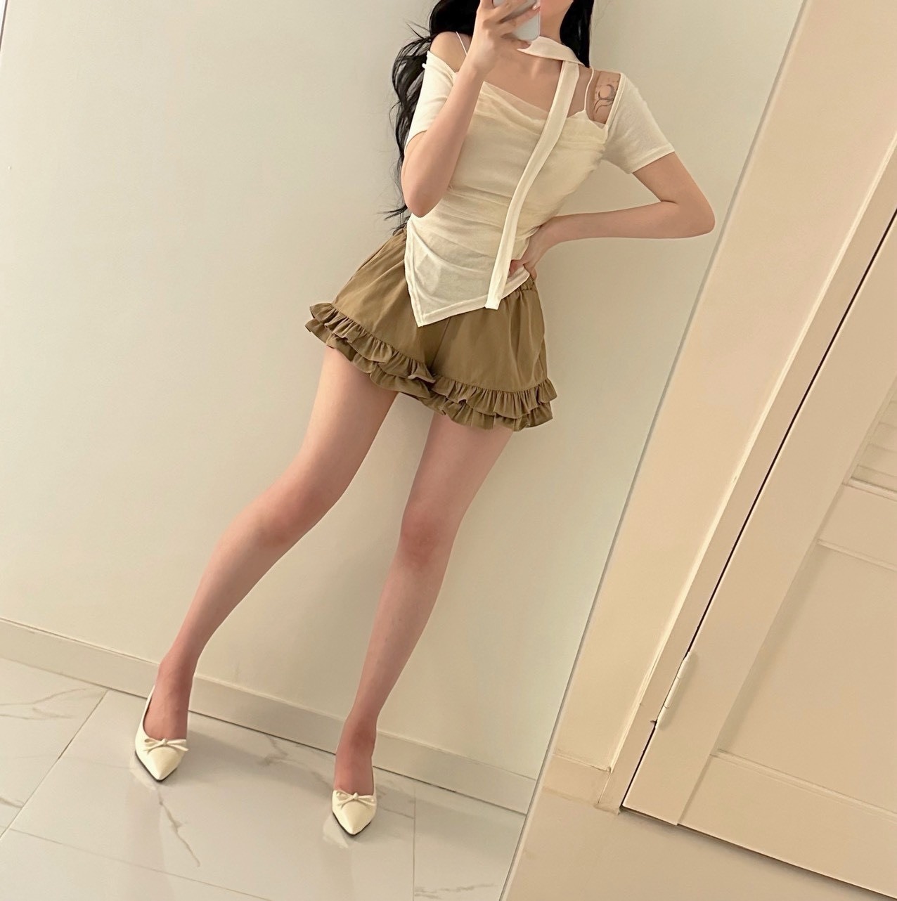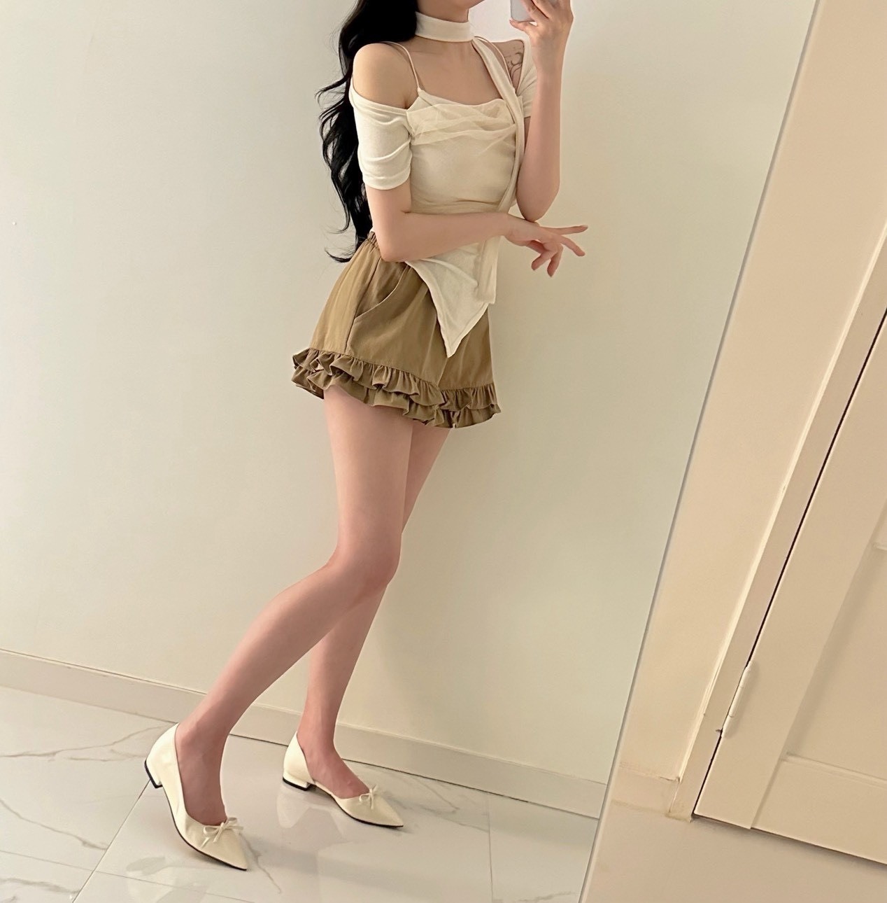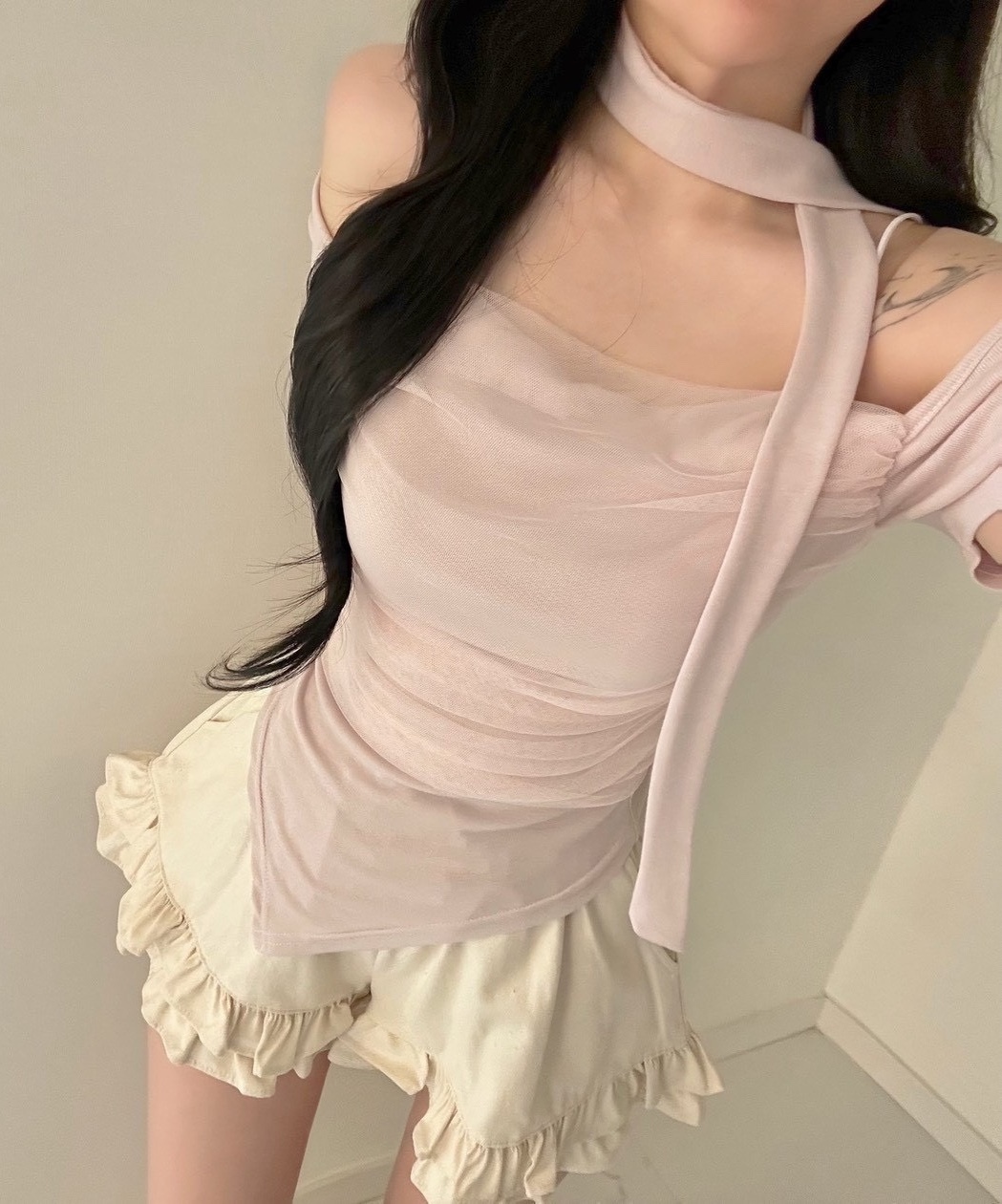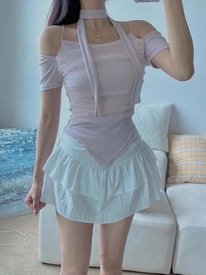 ● 白/淺色衣物,不論材質皆較透膚,建議可穿白/淺色內搭小可愛