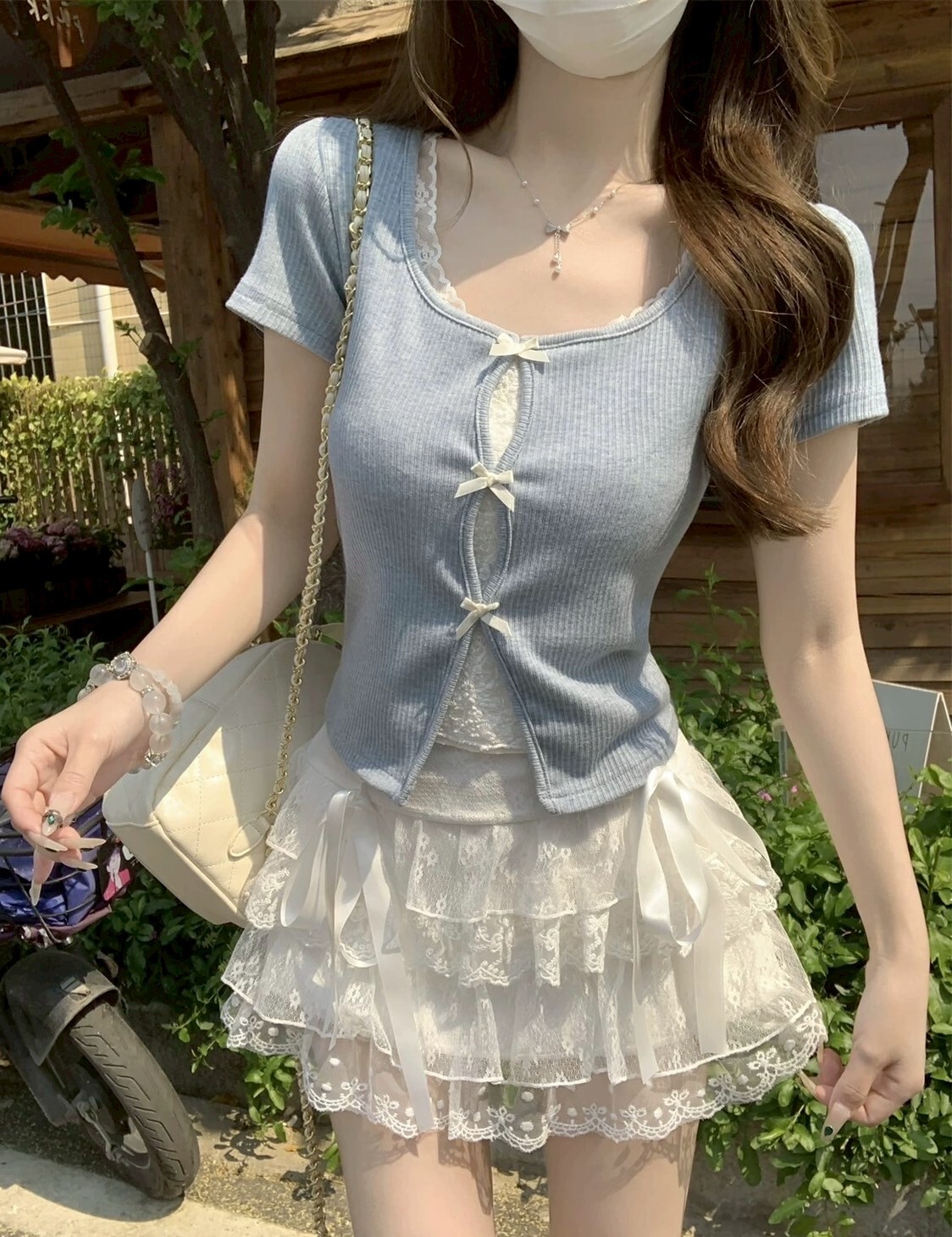● 白/淺色衣物,不論材質皆較透膚,建議可穿白/淺色內搭小可愛